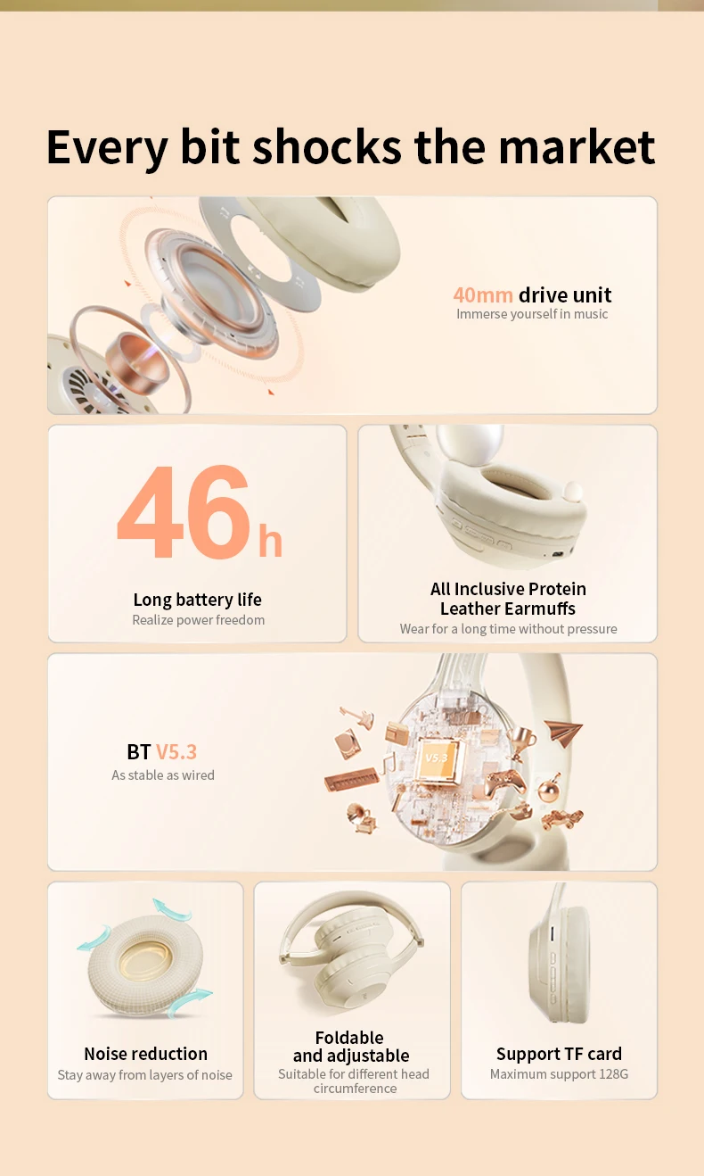 - Powerful HiFi Sound: Dual 40mm neodymium drivers produce rich bass, clear mids, and crisp highs (20–20,000 Hz) with built-in microphone for clear calls and gaming; also supports direct microSD card playback.