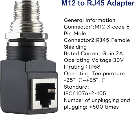 | Color | M12 Male to RJ45 X Code-8 Pin |