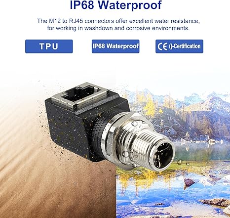 M12 RJ45 Connector and Cable, designed for exceptional performance in industrial environments. IP68 rating, ensuring reliable connectivity even in harsh conditions. The M12 RJ45 offers a secure and dust-tight connection, ideal for Ethernet, Industrial Ethernet, and Fieldbus applications.