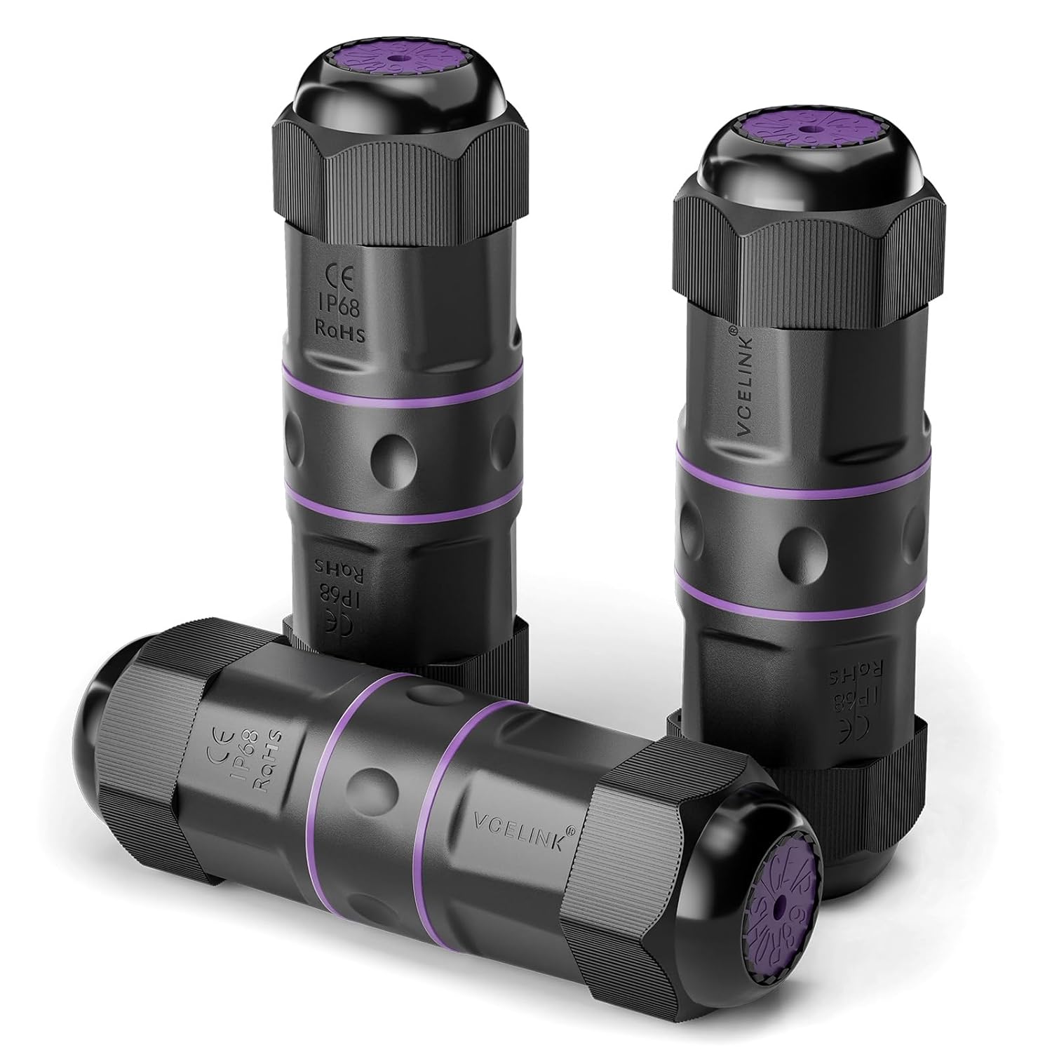 VCELINK Waterproof RJ45 Coupler IP68 Short Profile, Cat6/Cat5E/Cat5 Waterproof Ethernet Connector Shielded, Outdoor Network LAN Cable Extender PoE 6-Pack, 3.23in (Purple-3 Pack)