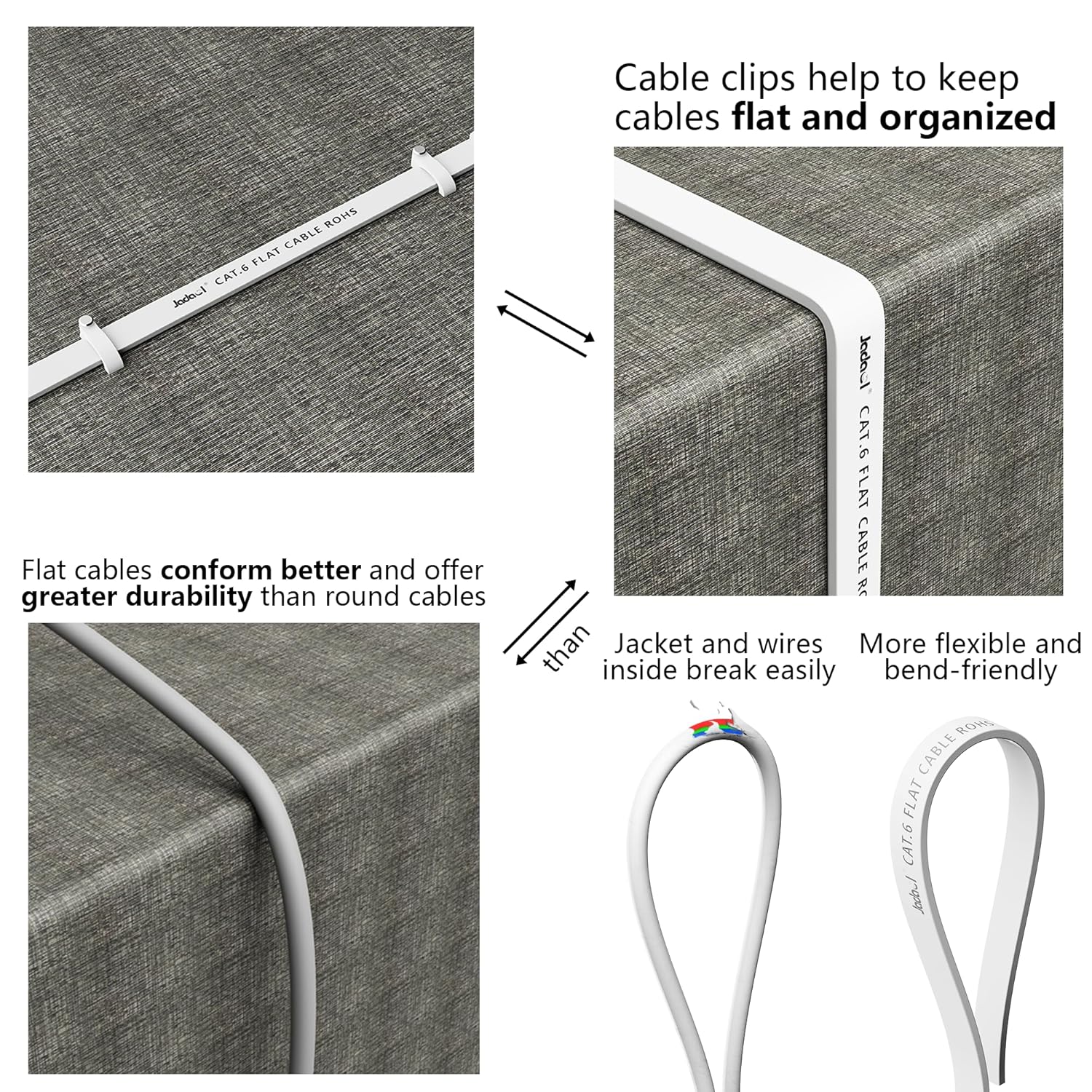 • The unique flat cable shape allows for a cleaner and safer installation. You can easily and seamlessly make the cable run along walls, follow edges & corners or even make it completely invisible by sliding it under a carpet. Suitable for both outdoor and indoor use.