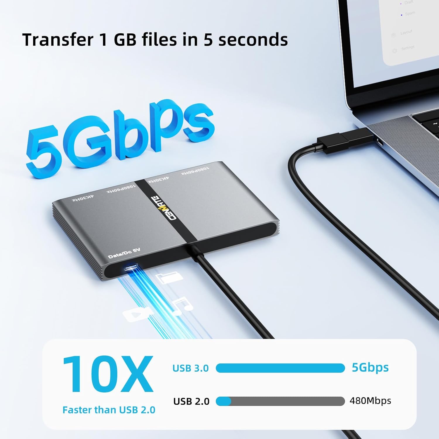 - 【Type C 3.0 Port】Transfer Files in Seconds: 10 times faster than USB 2.0. Transfer 1G movie in 3-5 seconds via the Type