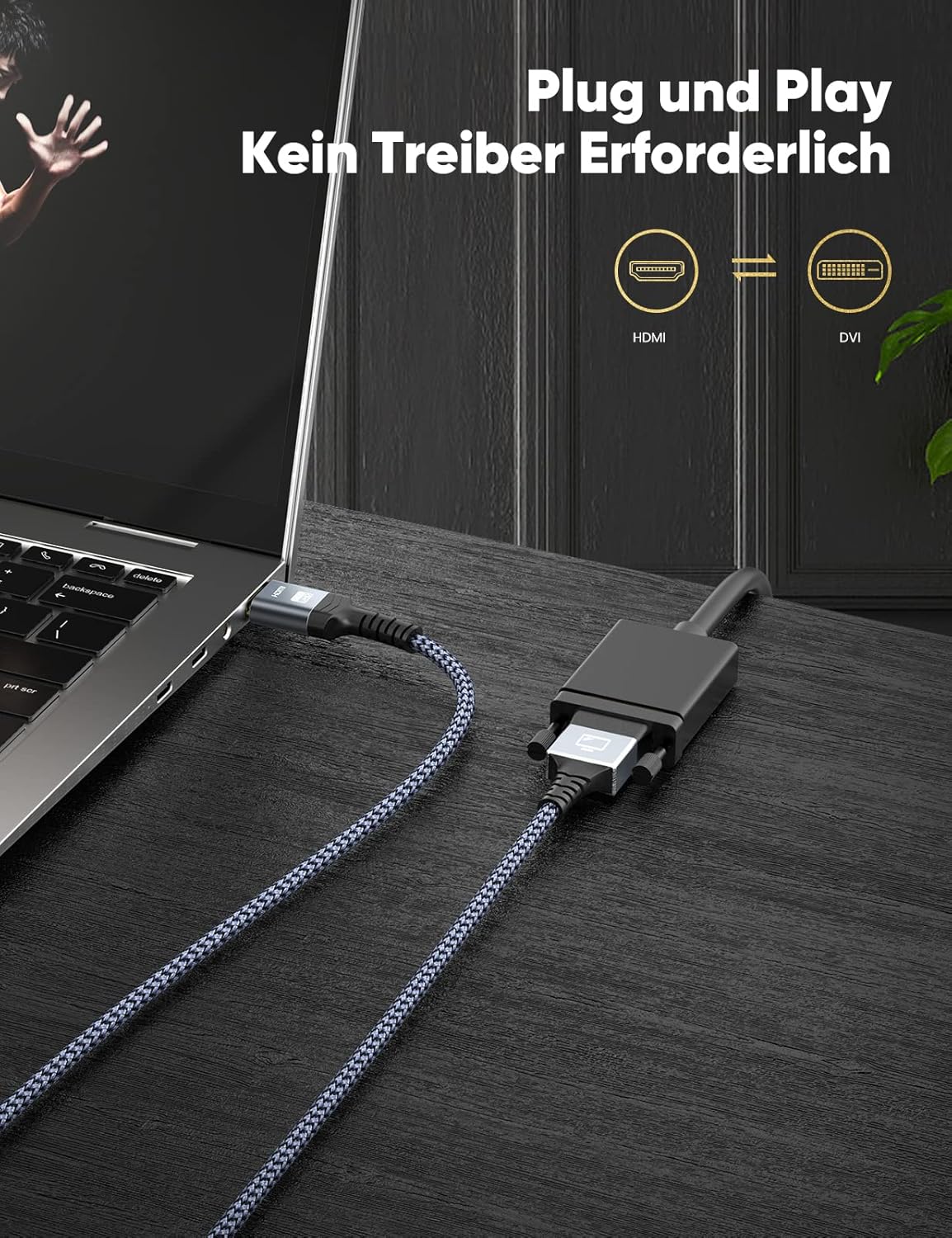- HD 1080P Plug-and-play: Supports resolutions at 800×600, 1024×768, 1280×1024, 1600×1200 and 1080p for high resolution LCD and LED monitors, HDMI DVI cable is the same DVI TO HDMI cable, dvi to hdmi adapeter , hdmi to dvi adapter, dvi-d to hdmi