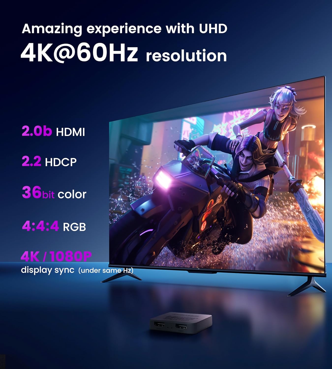 - Compatibility and Application: 2 Way HDMI splitter can connect various HDMI devices like TV, projector, monitor,STB, DVD,PC,PS3/4/5…; Solutions for home entertainment, presentation, event, education, and digital signage, enhancing viewing and engagement