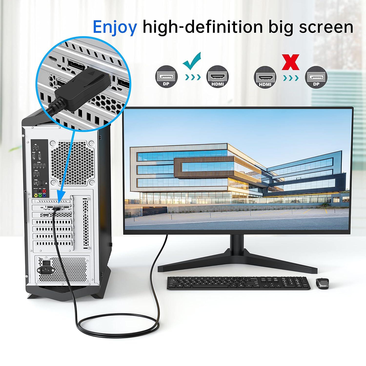 Display Port to HDMI cable is an indispensable companion for your PC, and tablet equipped with DisplayPort,Extend your desktop to a second monitor for an expanded workstation, To show presentations on a display at classroom, conference room with this cable.