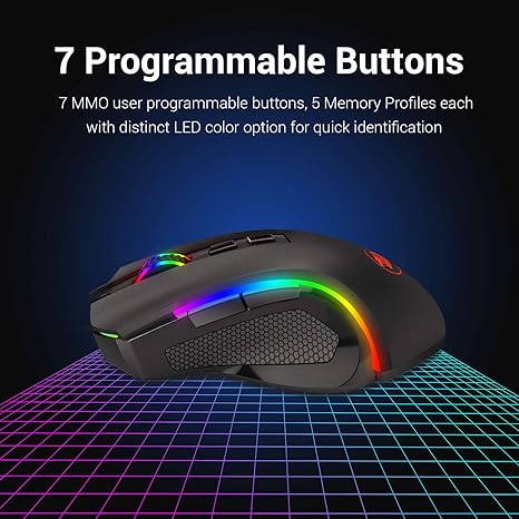 - 【Fully Programmable Gaming Mouse】- Redragon Wireless Gaming Mouse All buttons can be programmed with the driver and support macro editing. You can remap the buttons, assignment of complex macro functions, change RGB backlit effects, and adjust DPI (250-8000) to fit your different needs