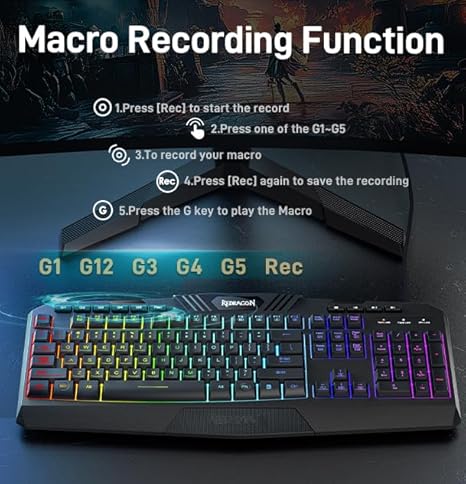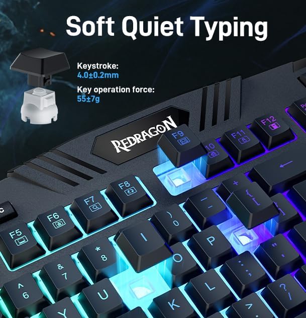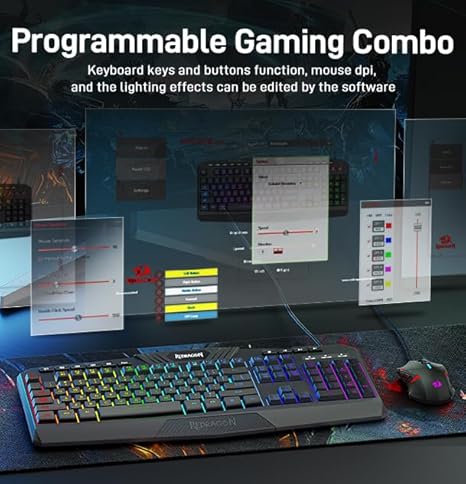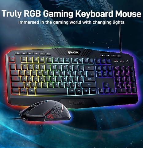 - 【RGB Keyboard and Mouse】The gaming keyboard has 6 RGB backlit effects, and the mouse has 10 RGB lighting modes that let you immersed in the gaming world. The lighting effects can be edited by software (download on redragon.com)