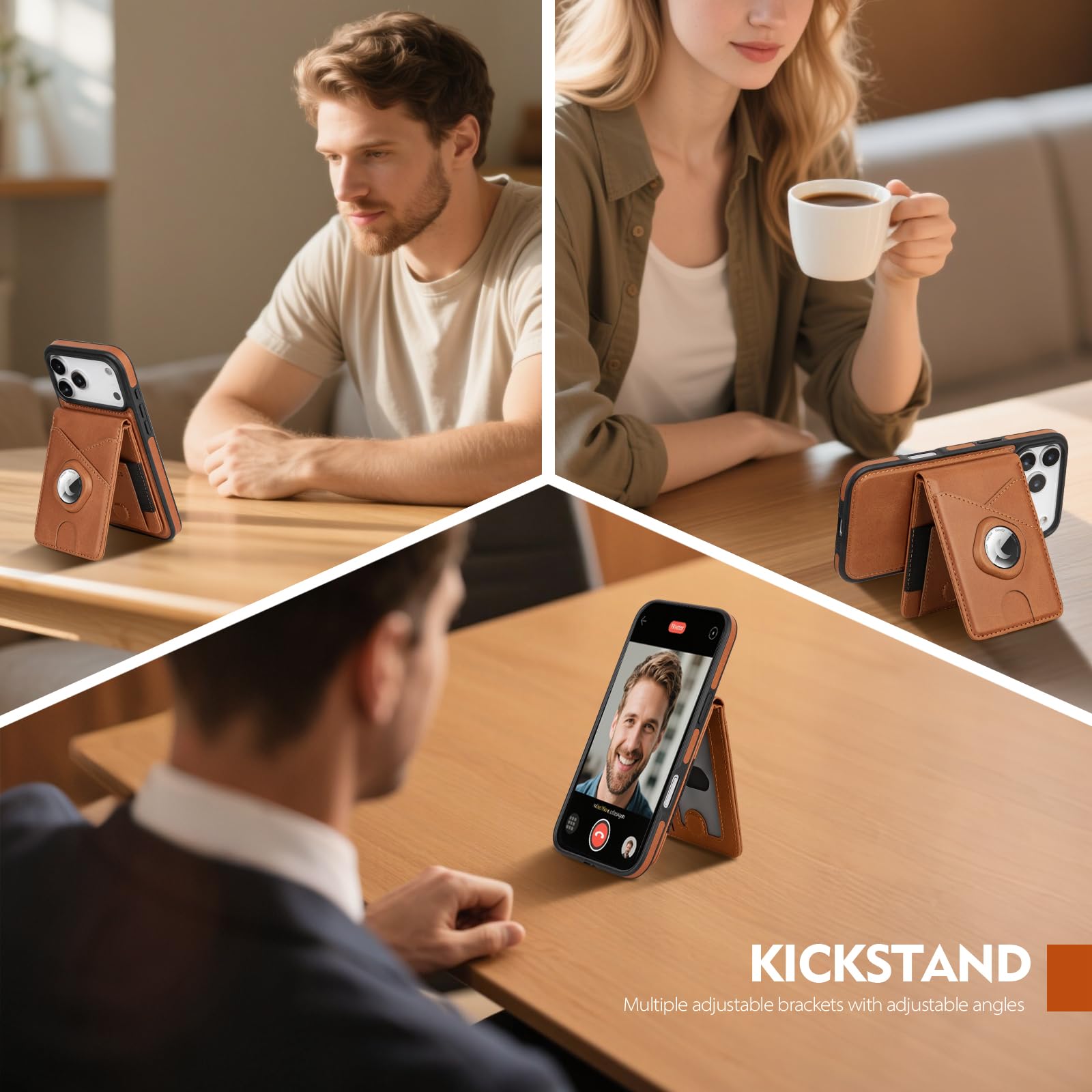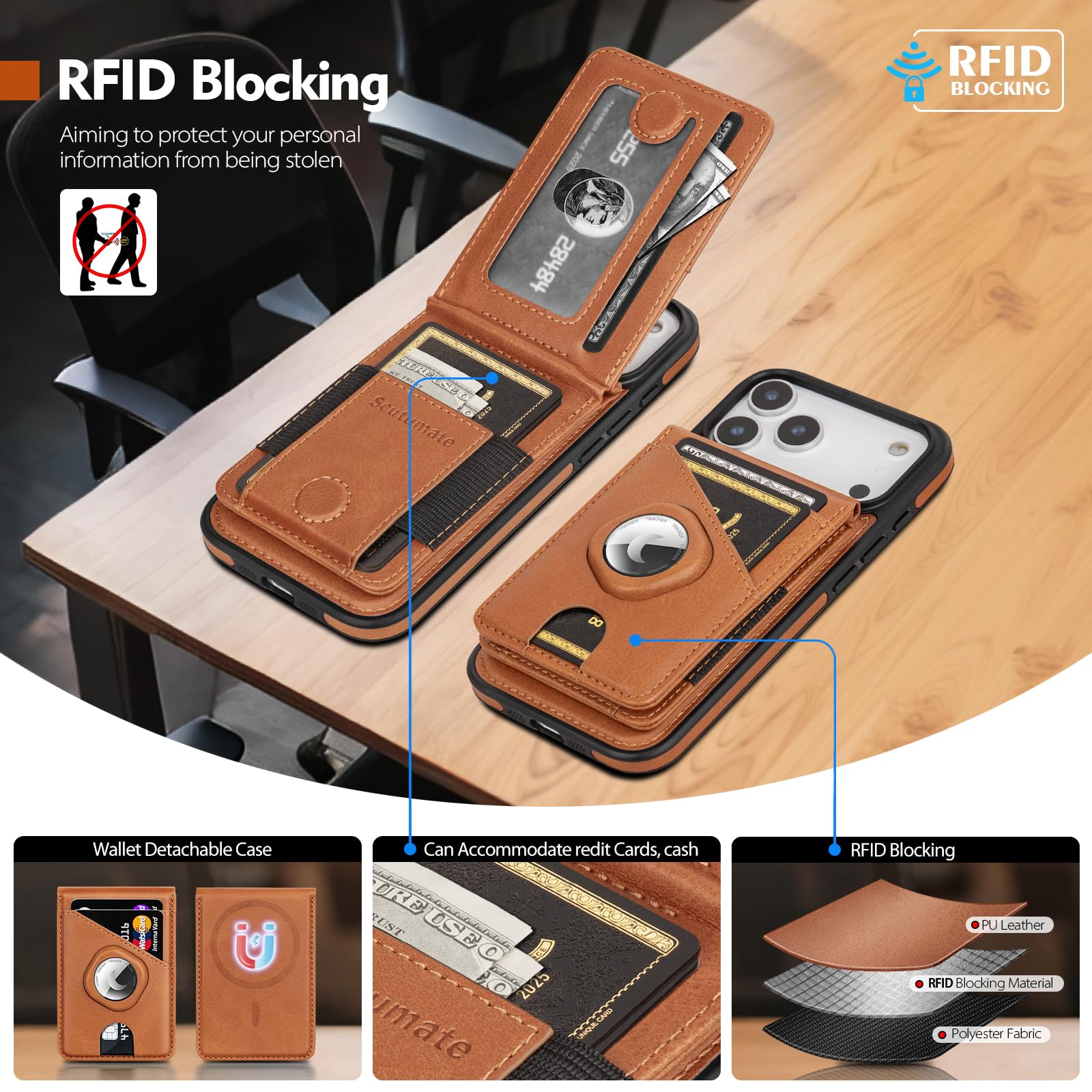 Scutumate Compatible with MagSafe iPhone 17 Pro Max Case Wallet with AirTag Holder,Men Women Magnetic Detachable 2 in 1 PU Leather RFID Blocking Credit Card Holder Flip Folio Cover Kickstand,Brown