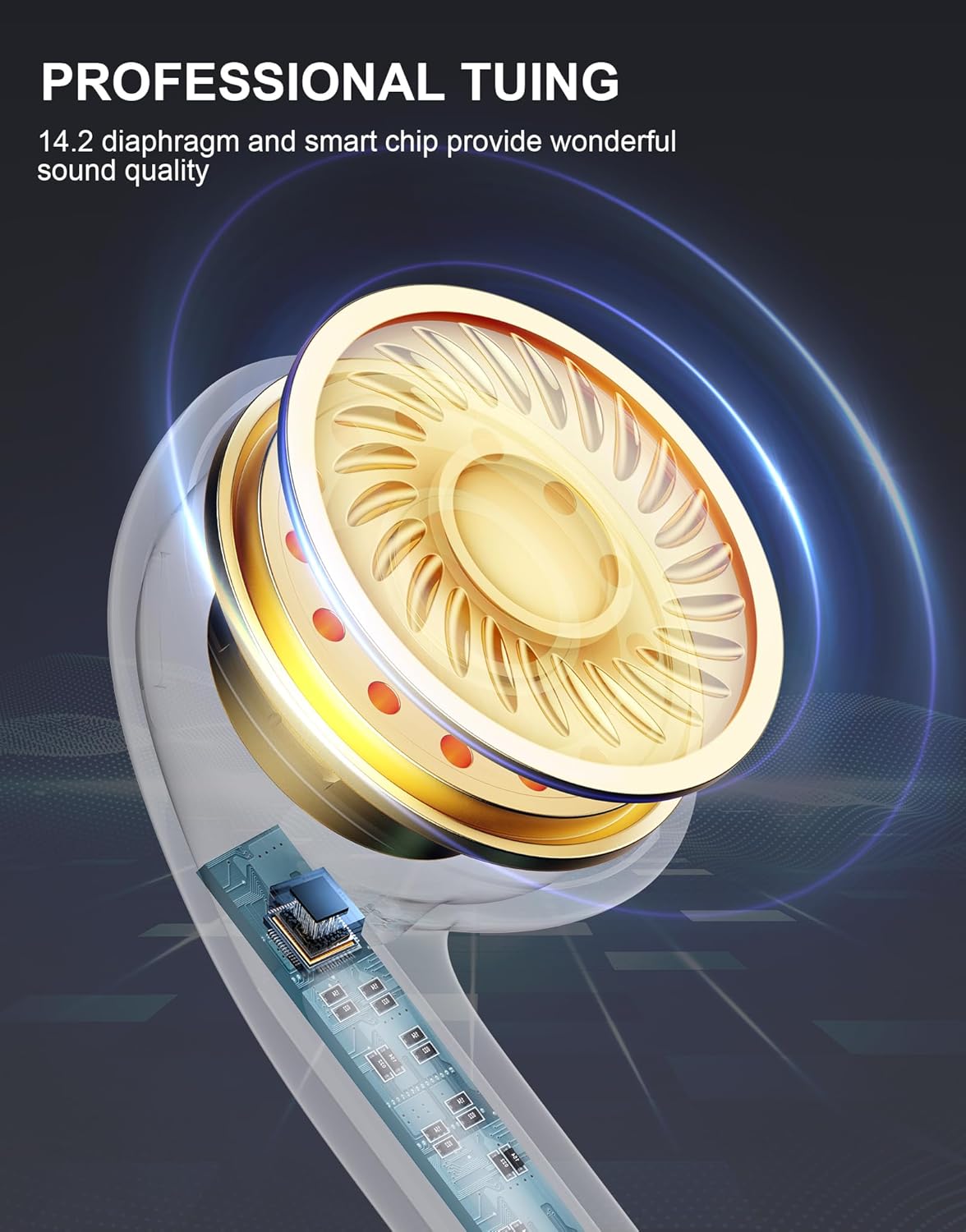- Comfortable None Ear-pressure Felling: Ergonomically design fit to the ear canal, the semi in ear style will not cause discomfort in ear pressure. Wearing it for a long time will not cause ear pain.