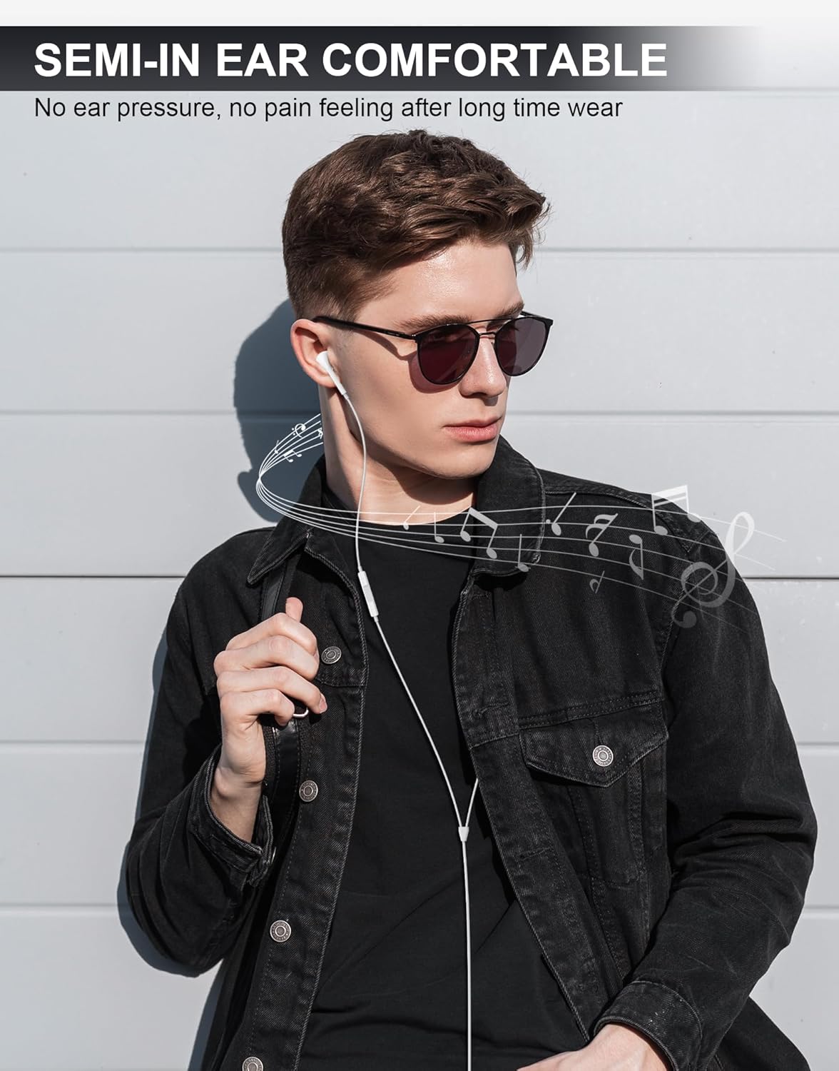 - HiFi Stereo Music Earbuds: Earphones built-in upgrade chip & 14.2MM dynamic driver maintain the high resolution acoustics of your devices. Stable connection, you can plug and play the music when running, walking, hiking, other exercising