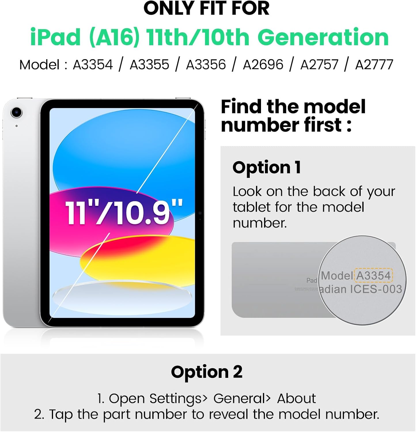• Compatibility: Only fits for iPad (A16) 11th/10th Generation 2025/2022 (11″/10.9″) , (Model: A3354, A3355, A3356, A2696, A2757, A2777); please double check the model number on the back of tablet (A****) before purchase.