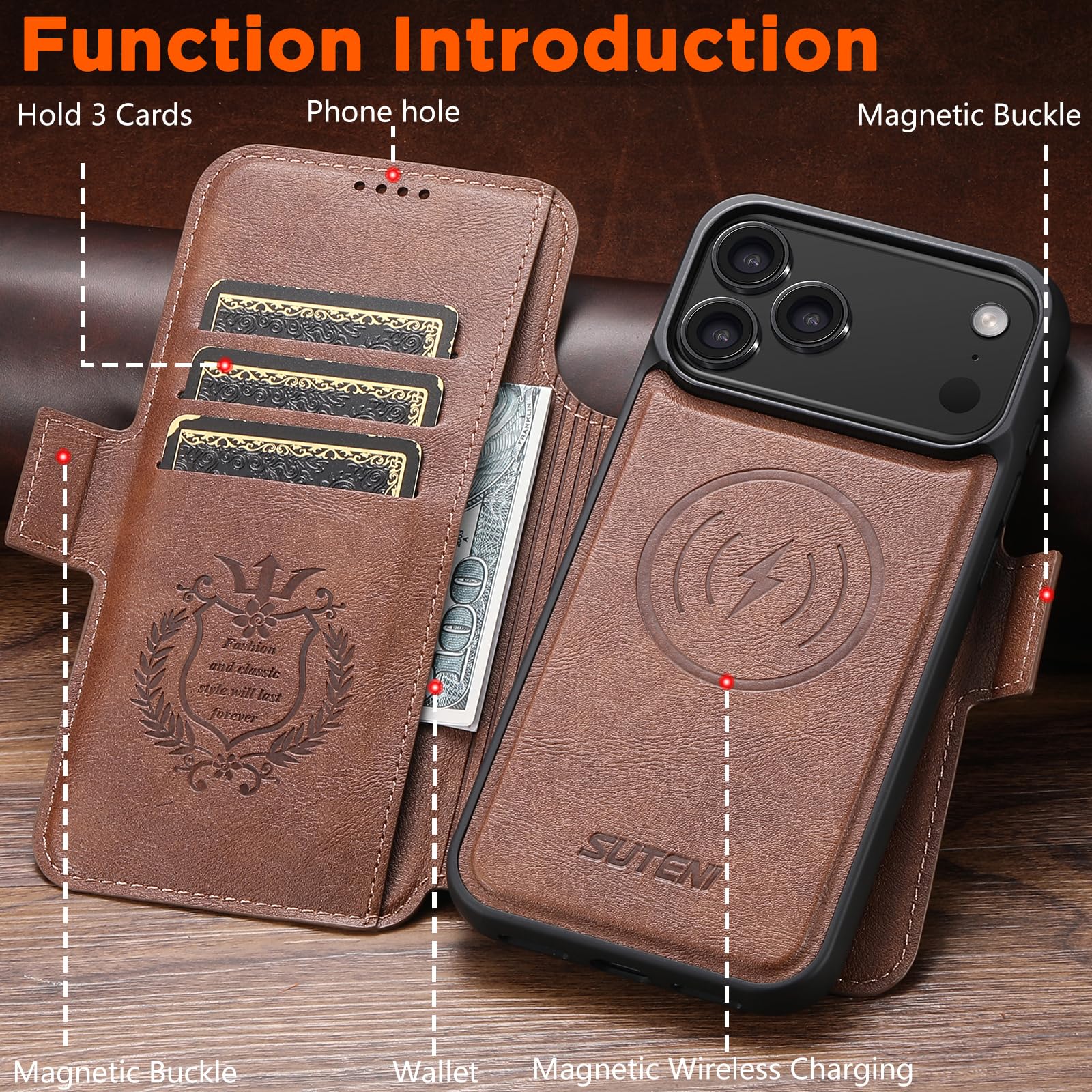 Combines a magnetic phone case with a detachable flip wallet. The magnetic phone case can be used alone as a basic case, has built-in enhanced and powerful magnets, supports MagSafe and Wireless Charger