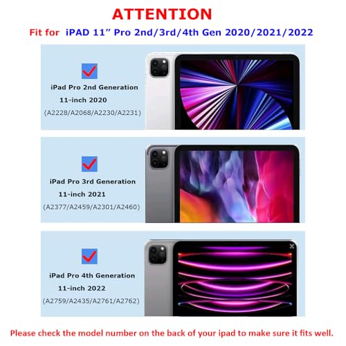 - Perfect Compatibility: Specially designed for 11 inch New iPad Pro 4th Generation 2022(Model Number: A2759 A2435 A2761 A2762) / iPad Pro 3rd Generation 2021 (Model Number: A2377 A2459 A2301 A2460) / iPad Pro 2nd Generation 2020 (Model number: A2228 A2068 A2230 A2231). Not compatible with any other devices