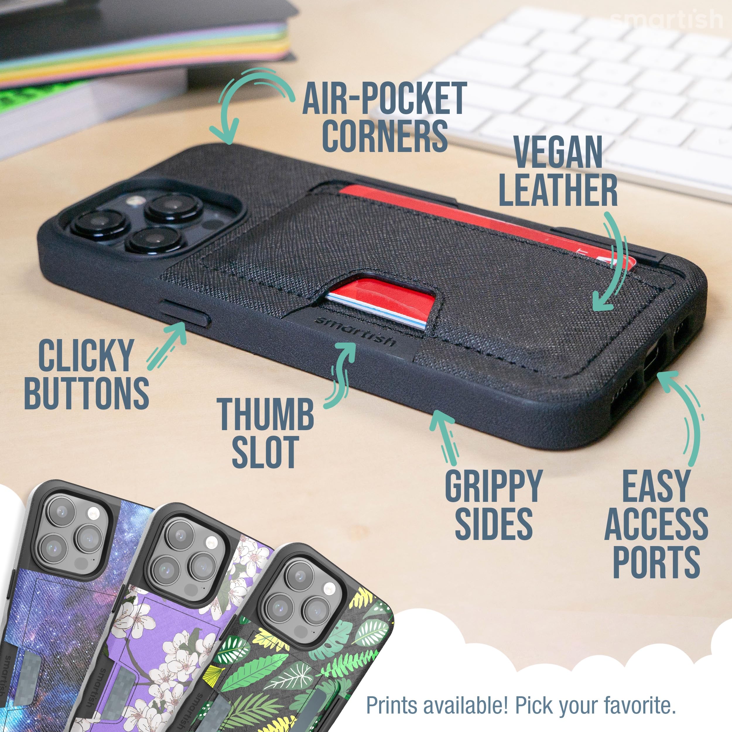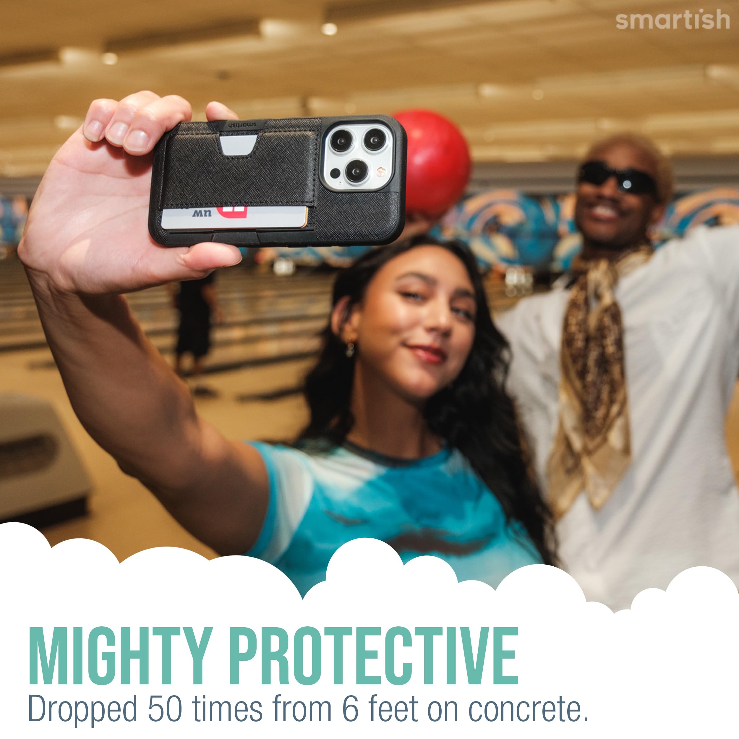 Smartishยฎ iPhone 15 Pro Max Wallet Case – Wallet Slayer Vol. 2 [Slim/Protective] Credit Card Holder w/Kickstand Drop Tested Hidden Card Slot Compatible w/Apple iPhone 15 Pro Max – Black Tie Affair