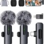 Wireless Mini Microphone for iPhone – 2 Pack Lavalier Microphone for Video Recording, 2 In 1 Noise Reduction Lapel Mic for Ipad, Android,Clip-on Mini Mic with USB-C for Content Creators Podcast