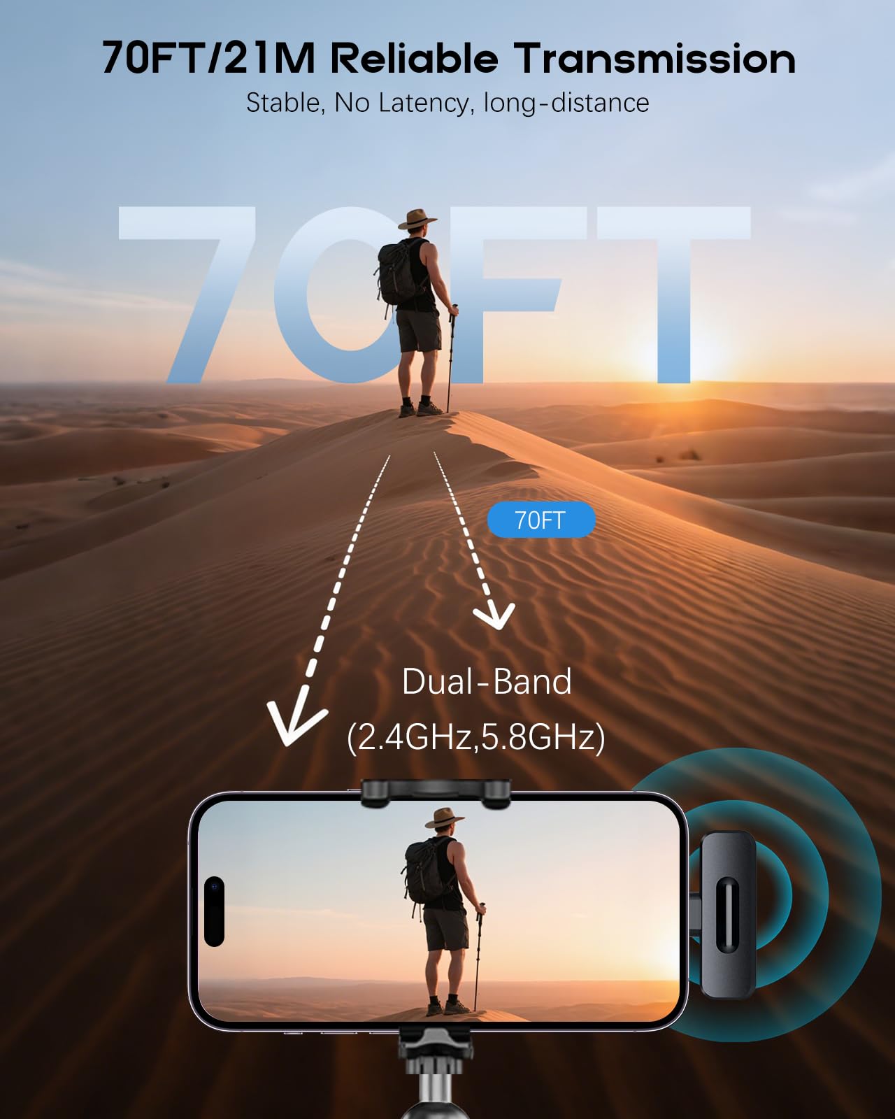 - 360° Clip & Universal Use: The rotating clip positions this lapel microphone wireless perfectly on collars, shirts, hats, or gear. Capture perfect audio for YouTube, TikTok, interviews, or vlogs from any angle with this essential wireless microphone for iphone.