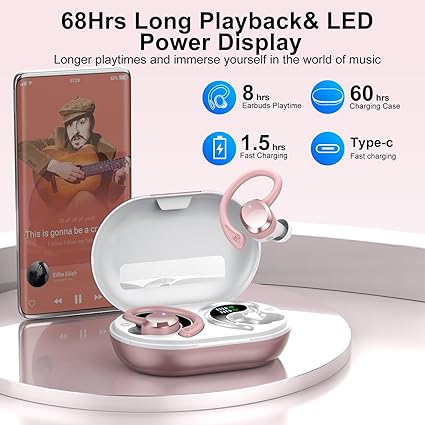 Wireless Earbuds, 2025 New Bluetooth 5.4 Headphones Sport Earphones with 68Hrs Playtime LED Display ENC Noise Cancelling Mic, IPX7 Waterproof Over Ear Ear Buds with Hook for Sports/Running