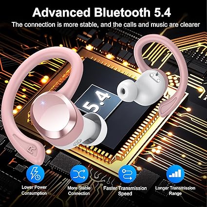- 【NEW GENERATION BLUETOOTH 5.4 TECHNOLOGY】 Experience an ultra-smooth, low-latency listening experience with wireless earbuds featuring the latest Bluetooth 5.4 technology, which boosts data transfer speeds by up to 75 per cent while consuming less power to maintain a stable connection even when used over long distances. After the first pairing, turn on the wireless headset to automatically connect to the paired device, no longer need to wait.