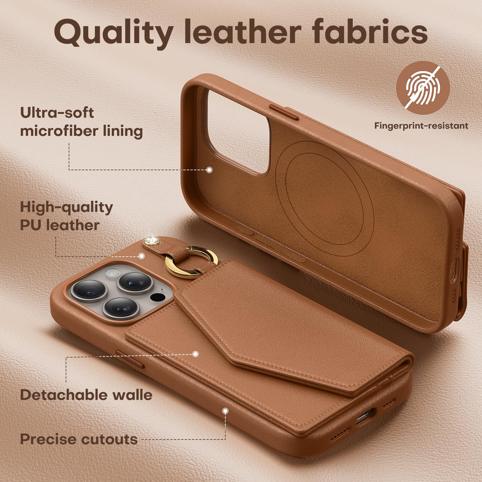TAURI for iPhone 15 Pro Max Case, Removable Magnetic Wallet Case with Card Holder, [Compatible with MagSafe] Durable PU Leather Phone Case with Wireless Charging, Brown
