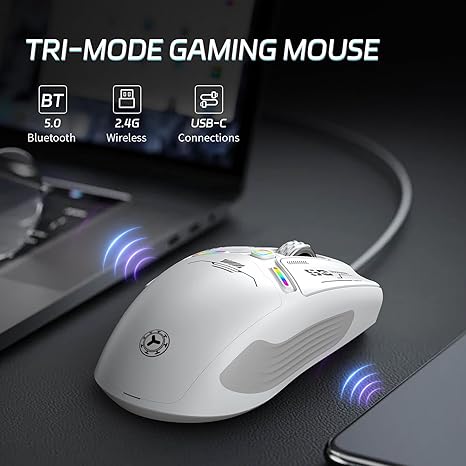- Triple-Mode Connection: M530 gaming mouse supports 3 modes switch. With 2.4G wireless, Bluetooth5.0, and wired connections, you have the flexibility to choose the connection that suits you best. Our wireless gaming mouse comes with a Type-C charging cable, ensuring continuous power when needed, and support to be wired.