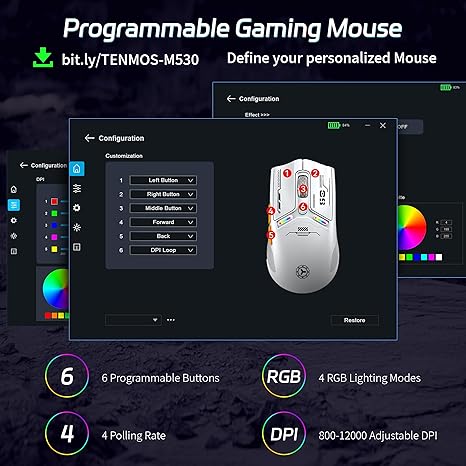 - Programmable Gaming Mouse: This wireless gaming mouse makes it possible for you to remap the buttons, assignment of complex macro functions, change RGB backlit effects, adjust DPI and sleeping time etc to fit your different needs via driver. It’s a good choice for gaming and working. The driver works for wired & 2.4G mode, and is compatible with windows only.