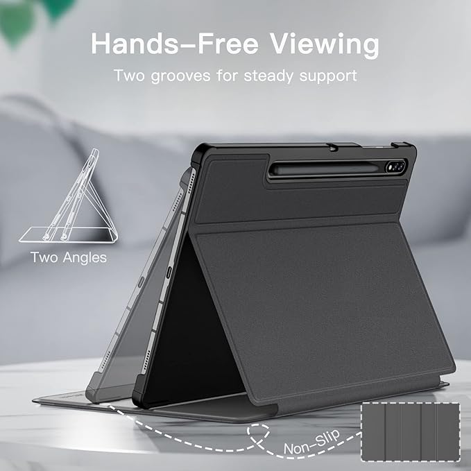 - [Multi Standing Positions] The two anti-slip grooves of the front cover can prop up your device in different viewing angles. Moreover, wider cutouts make it easier to use the camera, speaker, buttons and other features