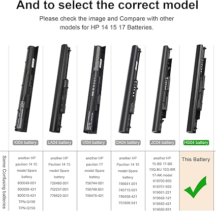 TIP: select the correct model, Please check the image and Compare with Replacement Laptop Battery for HP Pavilion 14 15 17 Series 15-ac / 15-af / 15-ay / 15-ba / 15g-ad / 15q-aj / 14-ac / 14-af / 14-am / 14-ad / 14q-aj / 17-x / 17-y