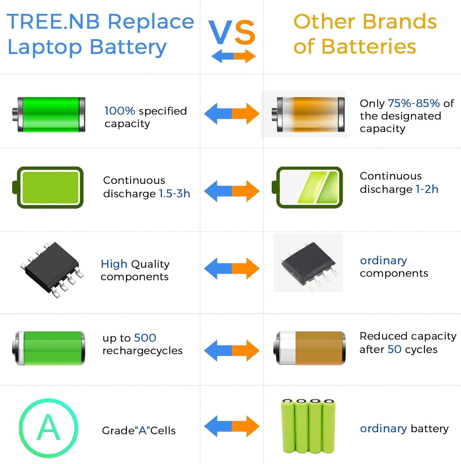 • Grade A Cells: 14.8V/2200mAh Cells 4-cell Grade A cells ensure fast charges and low power consumption. Built-in circuit protection ensures both safety and stability. Up to 500 recharge cycles over the life of the battery.