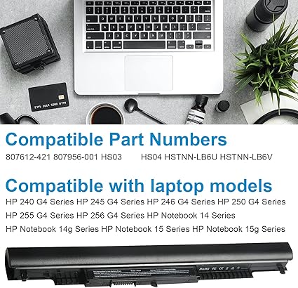 • Compatible Model:laptop Battery works with HP Notebook 14 14g 15 15g Series,HP Pavilion 14-ac0XX 14g-ad1XX HP Pavili on 15-ac0XX 15g-ad0XX Series HP 240 G4 HP 245 G4 HP 246 G4 HP 250 G4 HP 255 G4 HP 256 G4 Series
