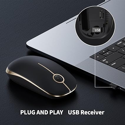 VssoPlor Wireless Mouse, 2.4G Slim Portable Computer Laptop Mouse with Nano Receiver Quiet Silent Optical Mice for Notebook, PC, Laptop, Computer-Black and Gold