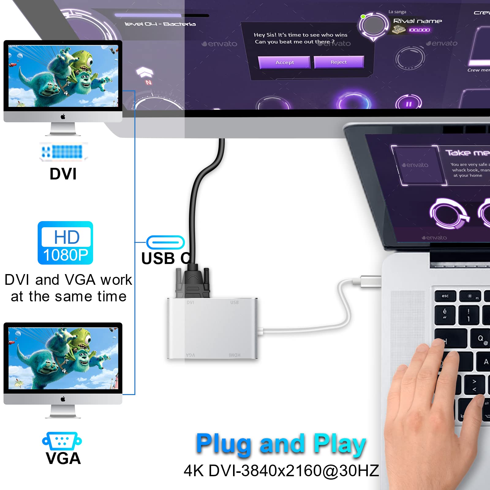 ![BENFEI USB C to DVI Adapter, Type-C to DVI Adapter [Thunderbolt 3/4 Compatible] with iPhone 15 Pro/Max, MacBook Pro/Air 2023, iPad Pro, iMac, S23, XPS 17, Surface Book 3 and More - Grey](https://sarahmart.us/wp-content/uploads/2024/05/61-uytBvZ4L._AC_SL1500_-600x600.jpg)