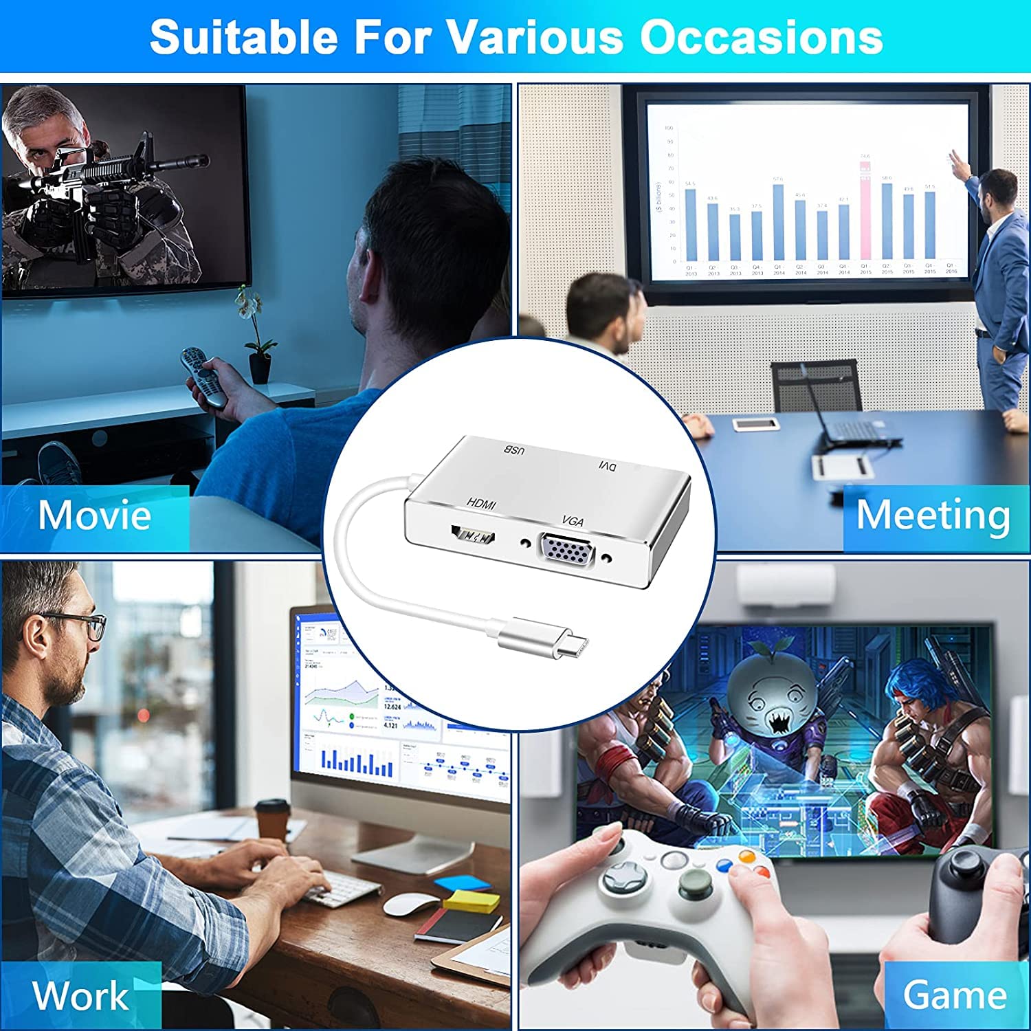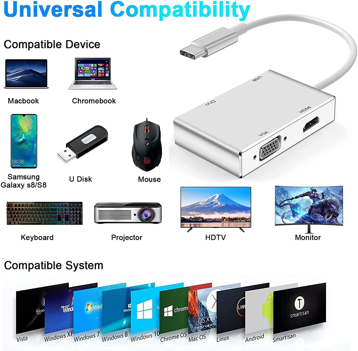 Type C to HDMI / DVI / VGA USB Multi-ports Adapter