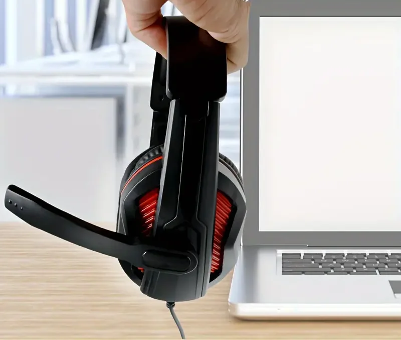 Wired gaming headset with microphone delivers immersive sound and clear communication for intense gaming sessions. The adjustable microphone .