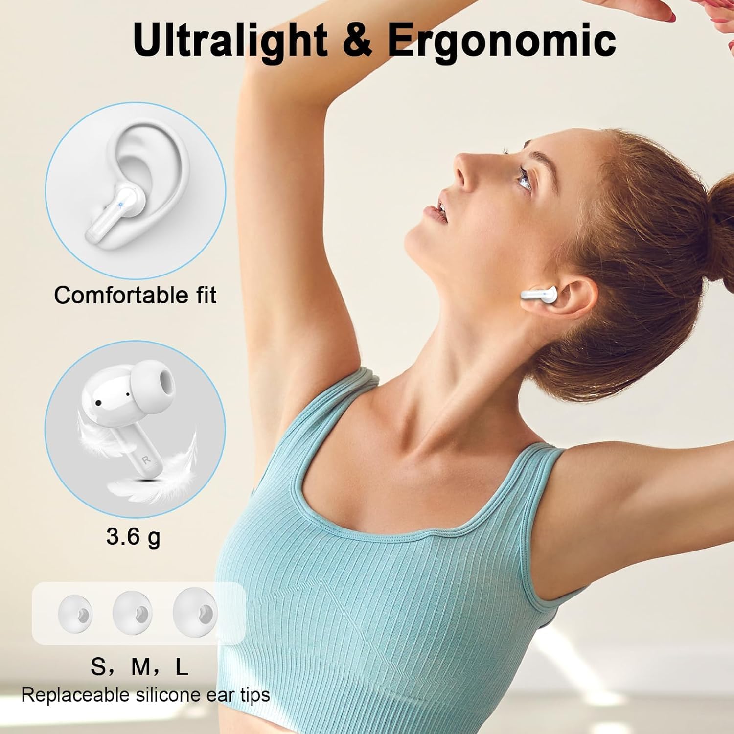 Wireless Earbuds, 2025 Bluetooth 5.4 Headphones 3D Hi-Fi Stereo Bass Ear Buds, 4 ENC Noise Cancelling Mic, 40H USB-C in-Ear Earphone Sport, 3g IP-X7 Waterproof Workout Gym for Android iOS Laptop Pad