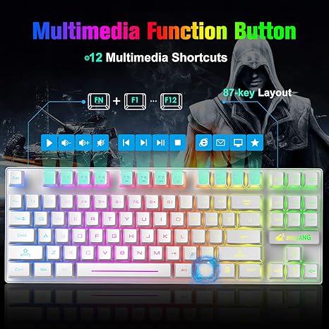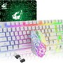 LexonElec Wireless RGB Backlit Gaming Keyboard Mouse Combo,Rechargeable 3800mAh Battery, 87-Key Mechanical Feel Keyboard, Quiet Mouse and Mouse Pad for Gamers and Office Typists(White)