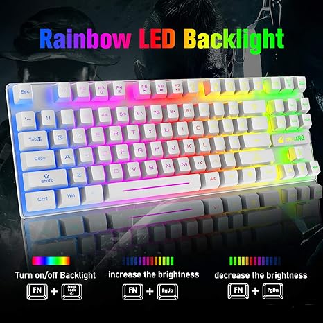 - 【Rainbow Backlight Keyboard Mouse】Wireless backlit gaming keyboard , 3 brightness levels for your choice, all keycaps have backlight function; keycap letters never fade,more glowing in the dark, provide unique visual feast when using and enhance the competitive atmosphere when gaming, and also you can easily turn the backlight off or on by pressing FN+Scroll key to fit your real needs, and the backlight will auto turn off if no using in 2 minutes to save energy.
