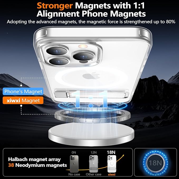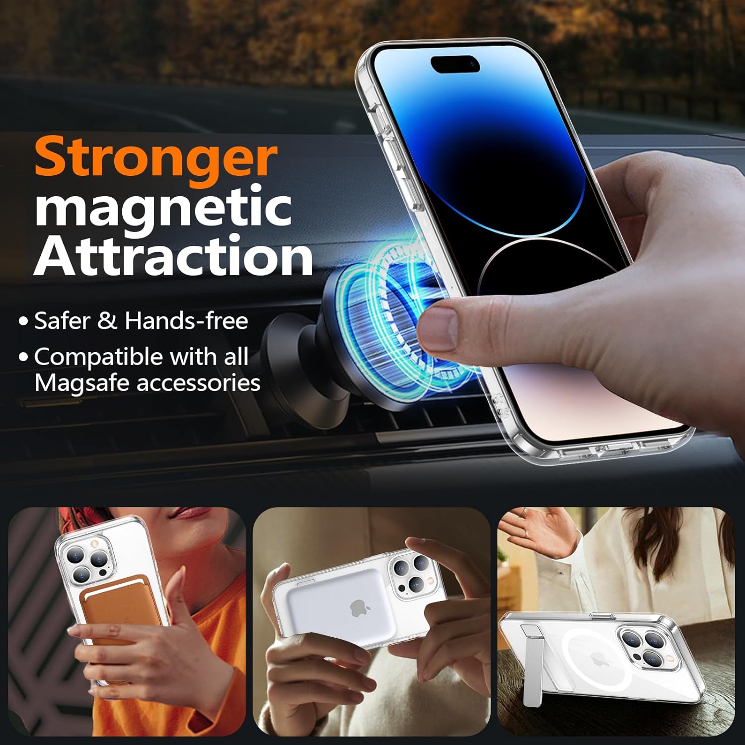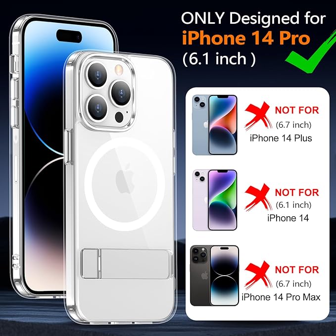 xiwxi for iPhone 14 Pro Case with Kickstand,[Compatible with Magsafe][1*Screen Protector],Military-Grade Protection & Anti-Yellowing,Magnetic Phone Case for iPhone 14 Pro,Clear
